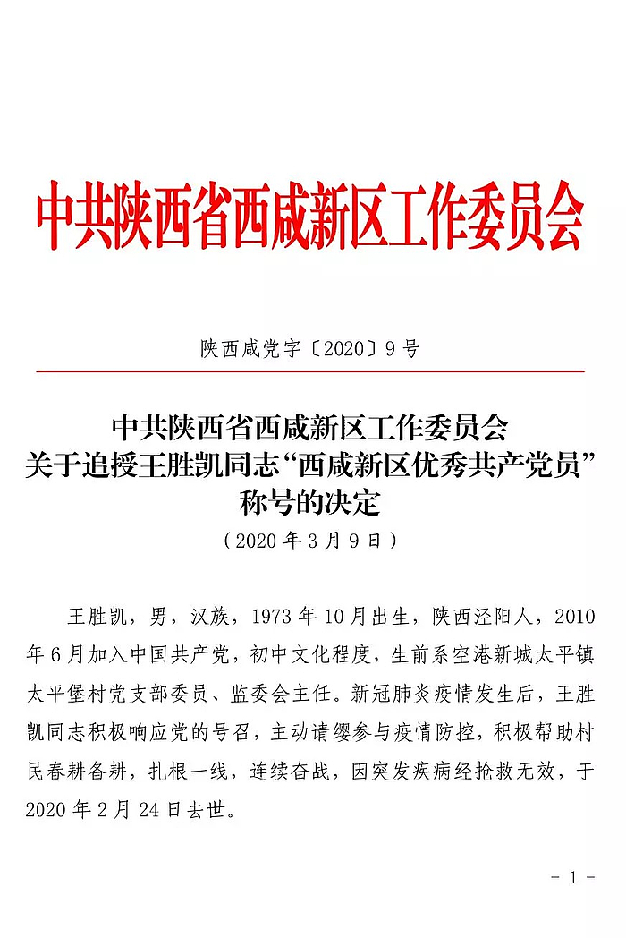 日前,西咸新區(qū)和空港新城分別追授王勝凱同志“西咸新區(qū)優(yōu)秀共產(chǎn)黨員”和“空港新城疫情防控先進(jìn)個(gè)人”稱(chēng)號(hào)。