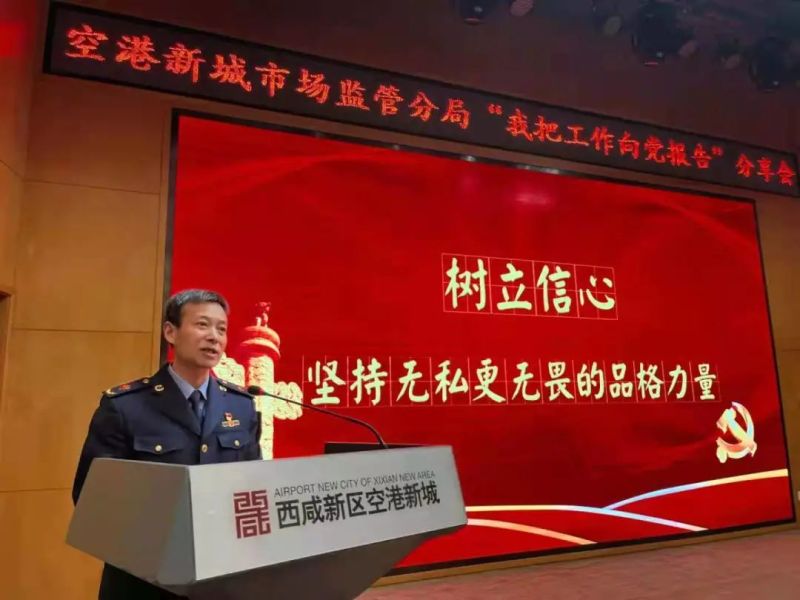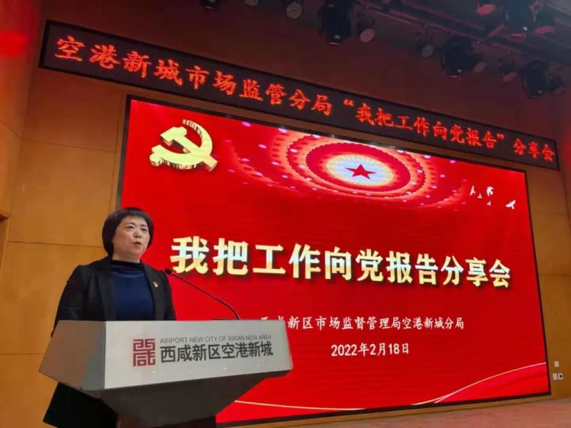 在新城復工復產加速之際,近日,陜西省西咸新區市場監督管理局空港新城分局“我把工作向黨報告”分享會在空港國際商務中心A區一樓報告廳舉行,來自分局9個黨支部的黨員干部代表追憶入黨初心、分享交流奮斗心聲,充分激發基層組織戰斗堡壘和黨員先鋒模范作用,凝聚隊伍合力,投入市場監管事業中去。