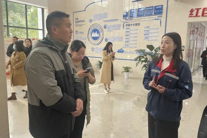 華瀚有關負責同志向來訪人員分享了黨建引領企業管理專業水平、服務質量提升的主要做法,介紹了黨支部司機之家、宣傳區、時光展覽館、組織生活館、紅色會客廳、紅色方向盤和華瀚商學院等7個功能區,特別是對華瀚黨支部“”黨建體系和“”黨建載體做了詳細講解,讓來訪人員多角度了解了華瀚的黨建和企業文化。