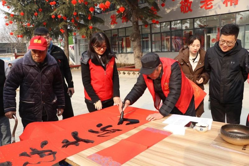 會后,活動現場氣氛愈發熱烈。書法愛好者們揮毫潑墨,在一張張紅紙上寫下了寓意美好的春聯,為大家送上了飽含深情的新春祝福,共同祈愿來年國泰民安、風調雨順。
