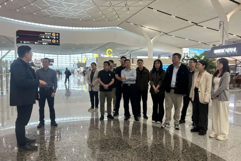 隨后,乘車前往西安咸陽國際機場T5航站樓,在T5站前發展中心干部王天宇的講解中,沉浸式參觀商業區和西部機場博物館。T5航站樓商業面積約7萬平方米,按照每百萬旅客1000平方米的容量進行設計,可保障至少7000萬旅客的消費使用,目前已引入多個國內外知名品牌,涵蓋餐飲、美妝、免稅、陜西特色商品等品類,打造“一站式”購物體驗。作為全球機場首家在地文物展示博物館,自2025年2月26日開館以來,西部機場博物館已累計接待海內外旅客近10萬人次,成為展示城市文化底蘊與航空魅力的重要窗口。優秀年輕干部們通過參觀學習,進一步探尋消費新趨勢下機場商業經營發展新理念、新模式,近距離感受空港高質量發展的澎湃動能。