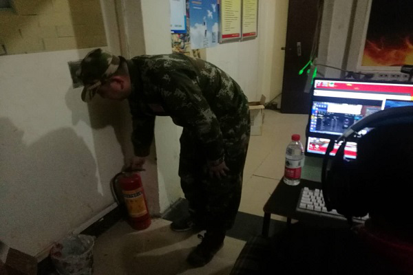 大隊監督檢查人員結合網吧人員密集的實際情況,對轄區網吧進行檢查,重點對網吧是否擴大經營面積、安全出口是否上鎖、消防器材是否配備齊全并完整好用、滅火器材是否齊全有效、疏散通道是否暢通、疏散指示標志及火災事故照明是否安裝并完整好用、是否存在違章用火用電、是否制定滅火和應急疏散預案及經營業主及工作人員是否有消防培訓證、是否對消防安全基礎知識掌握良好等情況進行了認真細致的檢查。