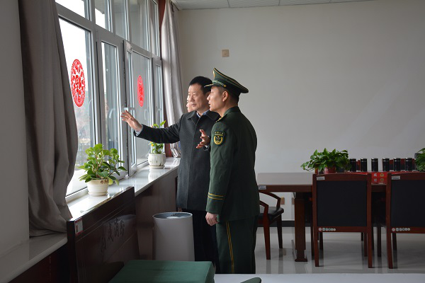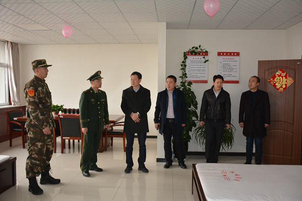 達到大隊后,賀鍵主任一行與全體官兵親切握手。為大家進行慰問品的發放的同時,又送上了新春祝福。慰問結束后,賀鍵主任參觀了部隊的戰斗班、圖書室、榮譽室、電影院等場所,仔細詢問了解官兵工作生活情況,叮囑隨行干部要調節好春節期間官兵們的伙食,廣泛開展豐富多彩的文化活動,創造良好內外環境,確保官兵身心健康。