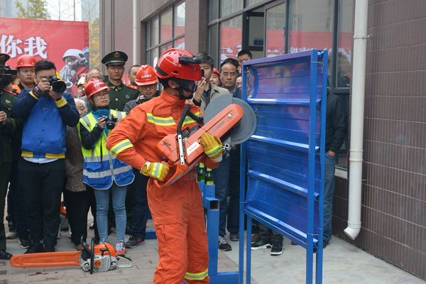 啟動儀式由空港新城公安分局負責人祝永民主持,首先由空港新城消防大隊大隊長陳家慶宣讀“119”消防宣傳月方案,緊接著由西咸新區消防支隊后勤處處長王靖宣讀關于聘用樓增良等同志為空港新城消防代言人、空港新城社區宣傳大使的決定,參加此次啟動儀式的領導為空港新城消防代言人、社區宣傳大使頒發獎杯。最后由空港新城黨委副書記、管委會陳默副主任作重要講話。儀式結束后,與會領導和現場群眾一道參觀了消防裝備器材演示區,緊隨其后的業務技能表演中,空港新城中隊消防官兵進行了攻堅技巧表演、搶險救援車輛講解及器材操作示范、利用無齒鋸在燈泡上切鐵絲等。結合此次活動主題,針對社區消防安全,現場設置了豐富多彩的互動節目,空港新城大隊通過開展“消防禮品”套圈游戲,充分調動了廣大群眾的積極性和主動性。空港新城消防大隊還通過設立消防咨詢臺、掃描二維碼、展示消防宣傳展板、消防器材、發放消防宣傳資料等方式積極向過往群眾宣傳消防知識。此次活動共發放消防宣傳彩頁500余份,宣傳禮品300余份。
