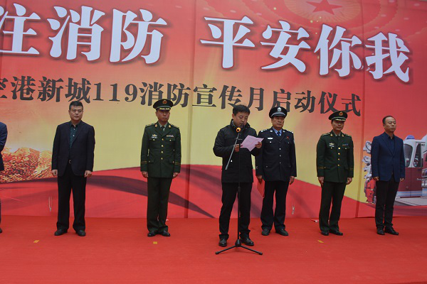 為深入開展“119”消防宣傳月活動,進一步增強轄區居民消防安全意識,有效遏制各類火災事故的發生,11月9日上午,由空港新城消防大隊承辦的2017年“119消防宣傳月”啟動儀式在幸福里小區隆重舉行,空港新城黨委副書記、管委會陳默副主任、西咸新區公安消防支隊后勤處處長王靖、空港新城公安分局負責人祝永民等出席啟動儀式。空港新城消防宣傳代言人與社區宣傳大使等群眾代表兩百余人參加了此次啟動儀式。