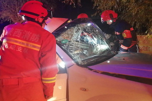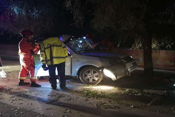 23時00分,空港新村中隊到達事故現場,經現場偵查確認,事故為小車駕駛速度過快,撞在路旁柳樹上,發生側翻。指揮員立即下達作戰命令:警戒組負責警戒,搶險救援組立即將車輛牽引水平,進行破拆操作。經過二十分鐘的緊張戰斗,人員被成功救出并移交120后,指揮員命令打開引擎蓋對發動機進行進一步的處理,再確認無燃燒爆炸可能后。23時25分,將現場移交給交警,中隊官兵收整器材返回。