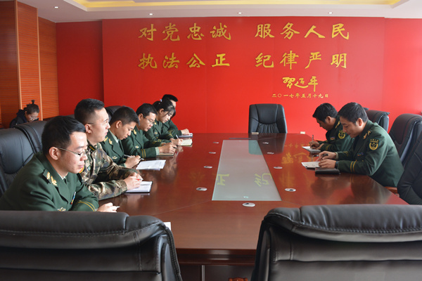 最后,陳家慶大隊長組織官兵再次研究大隊《正規化建設方案》,對照《大隊2017年正規化建設工作任務推進表》逐項進行再討論再研究再部署,確保按時按照標準完成正規化建設任務。
