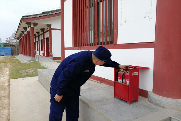 檢查組深入順陵、北杜鐵塔等文物保護單位內,主要檢查古建筑保護范圍內干枯雜草是否清理、是否存放易燃易爆物品情況;對滅火器材是否完好有效、電氣線路是否亂拉亂接、用火用電是否規范、是否存放可燃物等情況進行了詳細檢查。