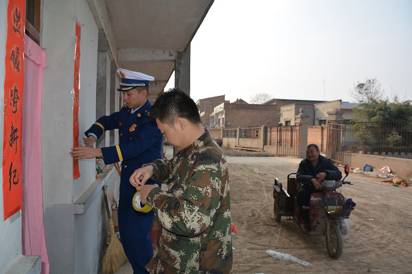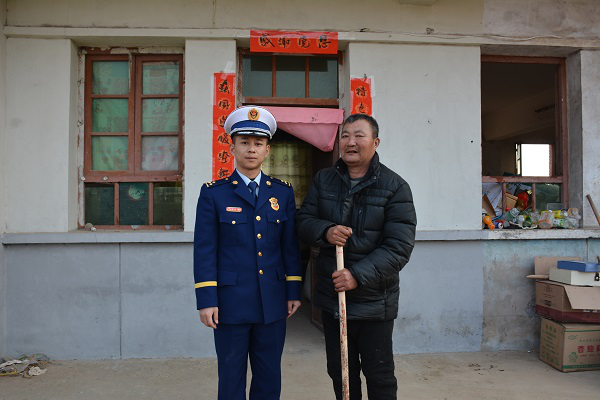 指導員劉毅帶領隊員們到達老人家里后,首先帶來中隊全體指戰員的親切問候,仔細詢問了孤寡老人老楊的身體狀況,對他近期的身體情況有了仔細的了解。老楊表示:最近病情有了明顯的好轉,自己也可以勉強做一些輕微的體力活動。這些都離不開空港新城全體指戰員的幫助與支持。對老楊表示關懷后,指導員劉毅帶領指戰員立刻對老楊的住所進行了清理整潔,為老楊提供了一個干凈的環境,隨后對老楊大門、院內張貼了對聯,并送上了節前慰問品。