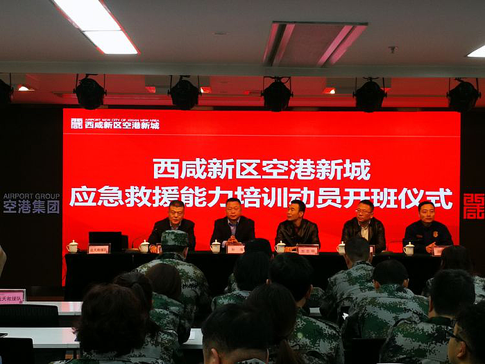 空港新城管委會副巡視員倪忠明,西咸新區管委會應急管理局副局長孫海等領導參加了此次培訓的開班儀式。