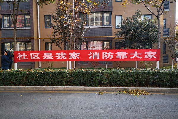 首先,宣傳人員與物業管理人員一起懸掛消防宣傳橫幅標語,向在場的居民發放防火宣傳彩頁,并強調了消防安全的重要性。同時宣傳人員對家庭火災常識進行了重點講解,如油鍋火災的處理方法、如何正確使用液化氣、用火用電的注意事項。隨后宣傳人員結合冬季氣候及社區特點,就防火滅火和逃生自救等消防常識進行了講解,提醒社區居民注意防火規范,全方位、多層次的闡述了消防安全的重要性及做好消防工作的必要性。