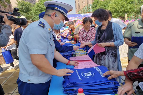 活動現場,通過設立咨詢臺、展示消防器材、發放宣傳資料、消防宣傳品、現場解答等方式,向前來咨詢的群眾普及消防安全知識。大隊參謀現場說明了火災的危害性、就如何正確報火警、如何預防家庭火災、如何撲救初期火災、日常生活中用火用電用氣注意事項、電動車如何防火以及如何逃生自救等消防安全知識進行了詳細的講解,倡導群眾進一步學習各類安全生產法律法規和消防知識,不斷提高自我保護能力。活動期間共發放宣傳資料300余份,解答群眾各類問題100余次,提醒廣大人民群眾時時注意防火,處處注意消防安全,大大提高了廣大居民對安全生產風險、事故隱患的認識,為轄區營造了穩定的安全生產環境。