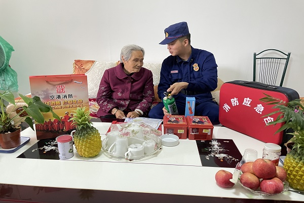 知識宣講 設(shè)施保障。消防知識記心間,設(shè)施設(shè)備做后盾。大隊宣傳員建議有條件的家庭配備必要的報警、滅火、逃生自救等器材。針對貧困、弱勢群體,空港大隊為其安裝獨(dú)立煙感器,發(fā)放滅火器、滅火毯、呼吸面罩等“消防大禮包”,為特殊家庭提供安全保障。