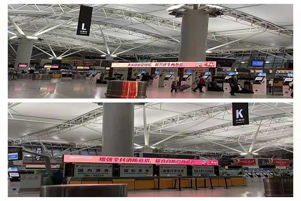 為切實做好“五一”期間消防宣傳,提升機場工作人員和乘客消防安全意識??崭巯来箨牻Y合轄區實際,積極與機場部門協調,在機場T2、T3航站樓內裝有大型LED顯示屏單位、地段,連續滾動播出消防宣傳標語,提醒乘客出行途中注意消防安全,營造消防宣傳聲勢。