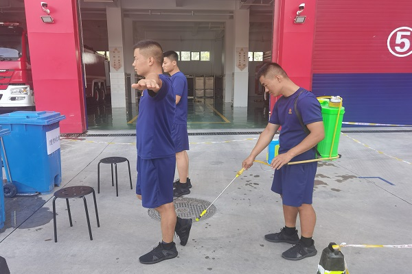 為全面提升十四運安保期間突發疫情事件的應急處置能力,根據支隊《西咸新區消防救援支隊內部疫情防控措施》文件精神,8月9日下午,景平大街消防救援站開展防疫消殺演練。