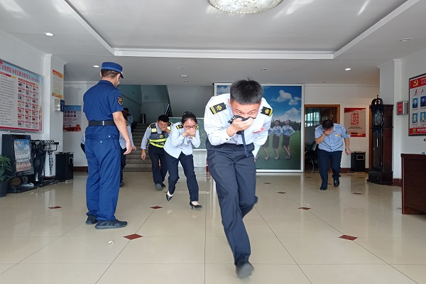 培訓過程中,站長熊冰濤首先向機場西收費站工作人員介紹了滅火器種類及使用范圍,并對滅火器正確使用方法進行演示。隨后,執勤點指戰員同培訓人員共同開展滅火疏散演練。演練假設機場西收費站辦公區域因設備老化發生火情,執勤點安保人員迅速組織人員進行疏散,并同工作人員進行模擬滅火處置,確保一旦發生火災,能夠快速反應。