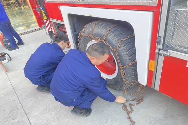 消防救援站以提高隊伍戰斗力和保障力為宗旨,按照后勤工作“三轉變一提升”的要求,組織對執勤車輛裝備的油、水、電、氣及線路、制動、輪胎、燈光、蓄電池等進行維護保養,及時更換使用低凝點的機油、燃油、防凍液、潤滑油、液壓油,并對各類消防車的泵室、消防泵及組件(管路、出水口、泄水閥)、水炮、液壓油箱等部位進行密封及防凍處理,同時組織專人對保暖服裝、燃料、噴燈、防滑鏈等物資進行全面檢查,及時補充,切實增強極端天氣條件下滅火救援裝備保障能力。