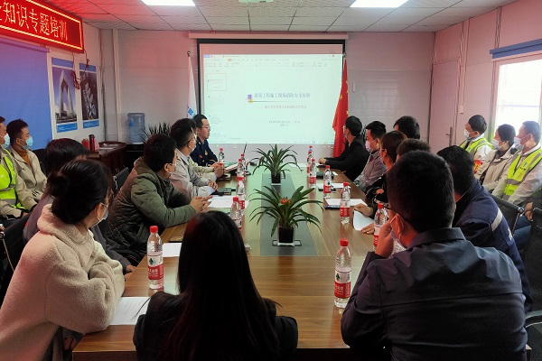 首先,大隊監(jiān)督干部組織參會人員播放了近幾年全國各地發(fā)生的多起影響較大的火災(zāi)案例,強調(diào)了因消防意識淡薄、消防技能欠缺而導(dǎo)致火災(zāi)事故的危害性和嚴(yán)重性,隨后采用以案說法的形式,通過PPT課件圍繞在建工地消防安全管理體系思路綱要及常見的各類消防安全隱患問題及對策,向參會人員闡述了消防安全管理工作特殊性和重要性。