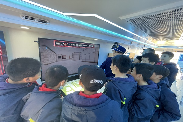 最后,宣傳員通過宣傳車上三維模擬滅火體驗(yàn)系統(tǒng)教孩子們認(rèn)識(shí)滅火器的種類,指導(dǎo)大家如何正確使用滅火器。孩子們爭(zhēng)先恐后的體驗(yàn)了宣傳車上的模擬報(bào)警體驗(yàn)系統(tǒng)、消防知識(shí)競(jìng)賽問答系統(tǒng),大家了解消防和學(xué)習(xí)消防的熱情和積極性得到了極大地調(diào)動(dòng)。