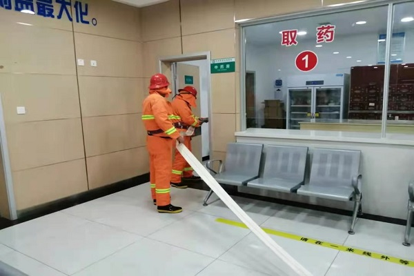 此次演練應急救援小組共分為五組:通訊聯絡組、救援組、疏散組、醫療救護組、后勤保障組。演練模擬病房突發火災,隨著警報聲的響起,疏散引導人員組織參演員工手捂口鼻,快速有序的從各個安全出口撤離火場,現場救援人員聞警而動、快速響應,第一時間趕赴演練現場,緊張有序的開展滅火救援。