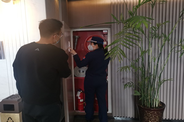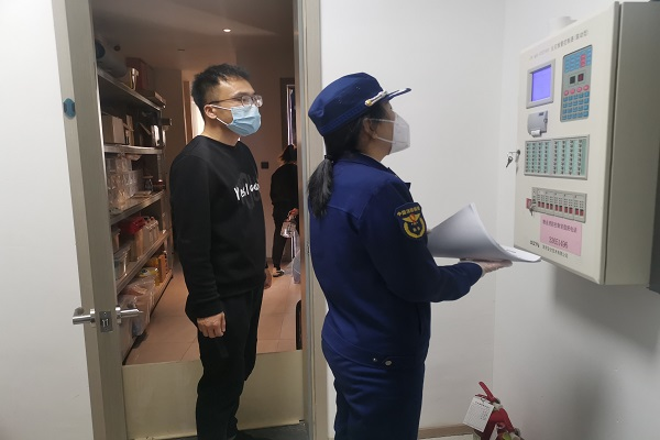 檢查中,大隊監督員認真聽取隔離酒店負責人關于疫情防控工作期間消防安全責任制落實、檢查巡查、自動消防設施、微型消防站值守、危險源管控等情況的簡要匯報。查看工作臺賬和消防應急救援預案,對各項消防安全制度是否齊全、安全職責及分工是否明確、建筑消防設施是否運行正常、安全出口數量和疏散門的開啟方向是否符合要求、疏散通道是否暢通、防護裝備及醫用酒精存放庫是否有專人看護、值班人員是否熟練掌握消防安全知識等情況進行全面排查,同時通過遠程服務指導酒店工作人員在疫情防控時期消防工作中的疑點和難點問題,有力促進了隔離點的消防安全管理工作。