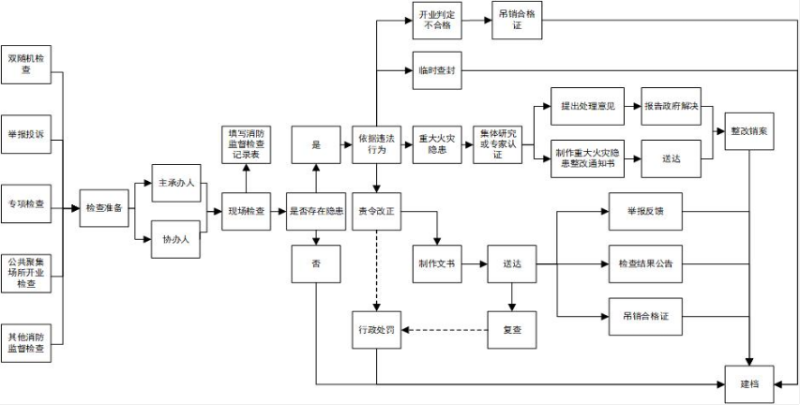 6、督促機關、團體、企事業單位整改火災隱患,對檢查中發現的消防違法行為依法查處。