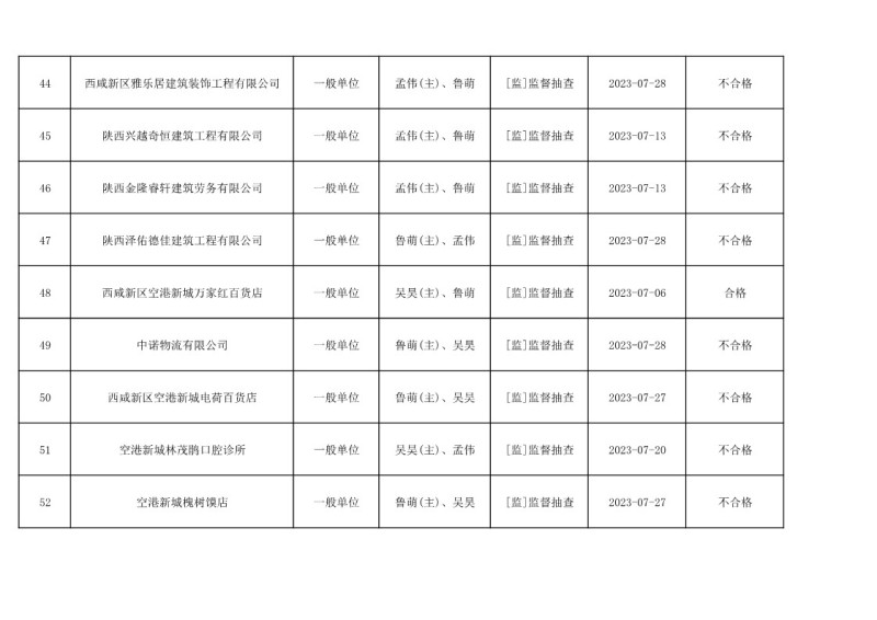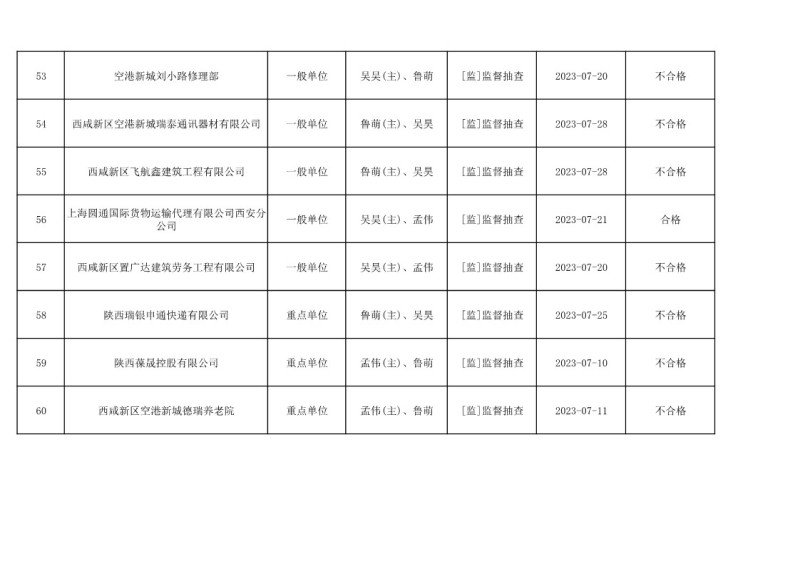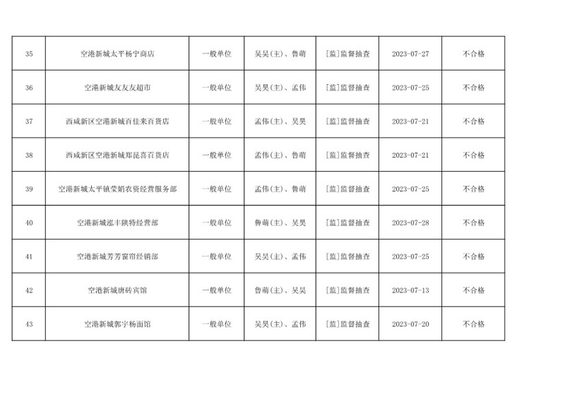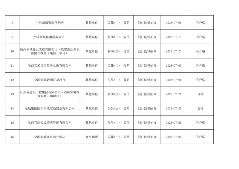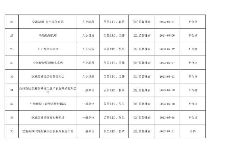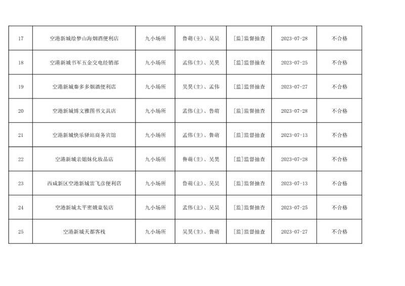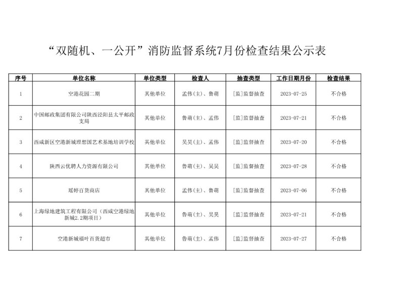 “雙隨機、一公開”消防監督系統7月份檢查結果公示表