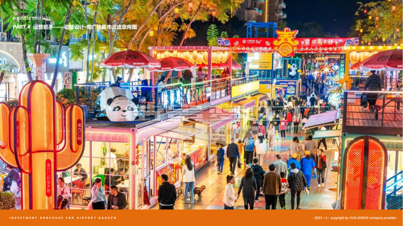 空港花園里,不僅是市民購物的新場所,更是市民文化生活的新天地。這里匯聚了豐富多樣的商業業態,涵蓋特色餐飲、精品零售、兒童培訓、大眾休閑、影城娛樂等,廣場設有兒童游樂區、人氣活動區、美陳休息區,為群眾提供舒適便捷的休閑空間。同時,將現有夜市引入商業內街,打造空港夜經濟。此外,街區將定期舉辦各類促銷、文創和公益活動,讓購物體驗更加豐富多彩。