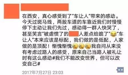 今年5月初以來,在市委、市政府的大力倡導下,在全市各行各業的積極參與下,在您的主動配合下,“車讓人”在我市的大街小巷已經越來越普及,成為古城西安街頭一道靚麗的風景線。作為生活在西安的您,當聽到別人談起街頭這些不再是罕見現象的停車禮讓時,您必定會感到自豪,因為,她確實發生了。西安,也成為了網友口中的“別人家的城市”!