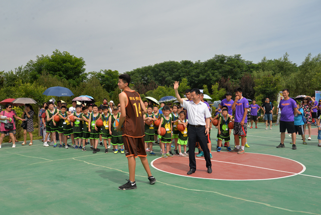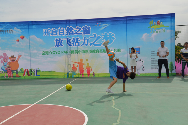 空港新城管委會黨委書記、管委會主任賀鍵,管委會副主任蒙彬斌和近200位學生及家長共同見證青少年素質教育園區開園儀式和2017年青少年籃球夏令營開幕儀式。