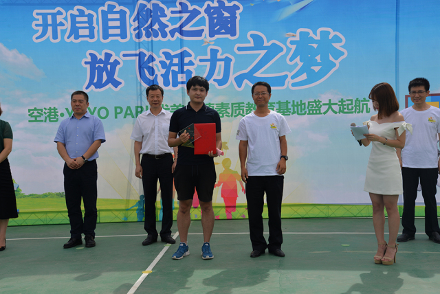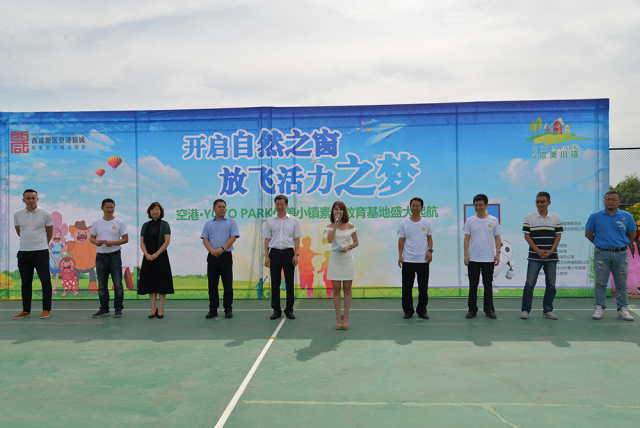 開園儀式上,賀鍵和企業嘉賓共同為園區揭牌,蒙彬斌為空港·YOYO PARK 優美小鎮卡通形象征集活動獲獎者頒獎。
