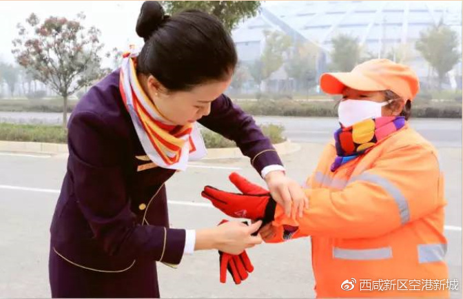 這個冬天,我用手機拍了一張照片。一個空姐正給一位保潔阿姨戴手套,兩人都在笑??战銉炑?、專注,笑容真誠,保潔阿姨感激而笑,又帶著些許不好意思。天空服務員和城市美容師,就這樣“牽手”。這樣的情景,在旁邊兩公里長的路邊“直播”。這當然不是日常行為,這是航空公司和空港新城舉辦的獻愛心活動,看著空姐、空少們在保潔阿姨的指導下,拿著掃帚掃地,旁邊媒體記者相機咔嚓咔嚓拍個不停。不管活動怎么樣,至少都是真實情感的流露。
