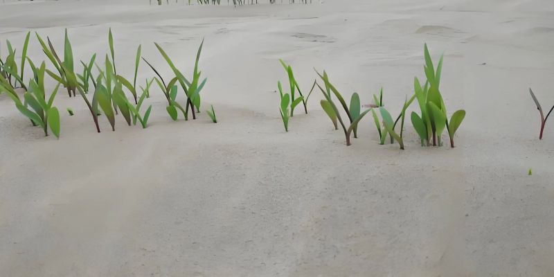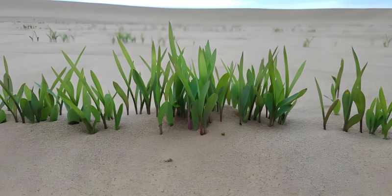 在新疆塔克拉瑪干沙漠、鄂爾多斯毛烏素沙地,這項(xiàng)技術(shù)已創(chuàng)造生態(tài)奇跡:新疆民豐縣2000畝示范區(qū),土壤有機(jī)質(zhì)從0.6%躍升至3.2%,植被成活率提升50%;鄂爾多斯千畝光伏治沙基地,灌溉用水減少40%,灌草覆蓋率三年內(nèi)將達(dá)70%,構(gòu)建“牧光農(nóng)互補(bǔ)”新模式。
