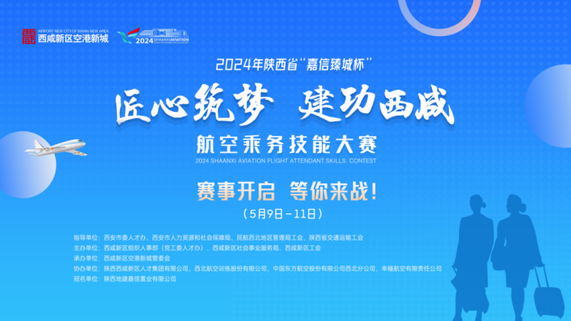 本次大賽由西安市委人才辦、西安市人力資源和社會保障局、民航西北地區管理局工會、陜西省交通運輸工會指導,西咸新區組織人事部(黨工委人才辦)、西咸新區社會事業服務局、西咸新區工會主辦,西咸新區空港新城管委會承辦,陜西西咸新區人才集團有限公司、西北航空訓練股份有限公司、中國東方航空股份有限公司西北分公司、幸福航空有限責任公司協辦,陜西地建嘉信置業有限公司冠名。