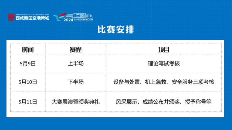 為加強民航乘務人員的專業技能和協作能力,進一步助力航空服務類專業建設和人才培養。5月9日—5月11日,以“匠心筑夢 建功西咸”為主題的2024年陜西省航空乘務技能大賽即將在西咸新區空港新城拉開帷幕!