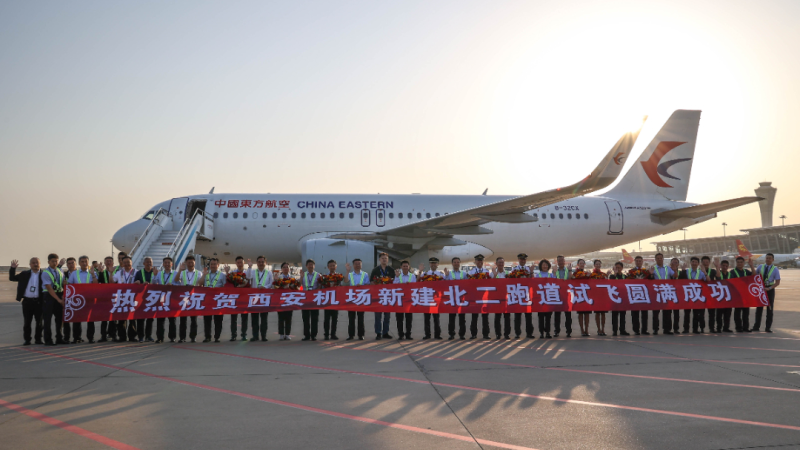 此次試飛工作由民航西北地區管理局組織開展,東方航空公司西北分公司負責試飛任務的具體執行,西北空管局、西部機場集團配合做好管制指揮與機場地面保障工作。民航西北地區管理局聚焦重點關鍵,緊盯時間節點,全程推動各項任務有效落地。西部機場集團組織機場建設指揮部、西安咸陽國際機場公司先后順利完成飛行程序評審、凈空排查、北二投產飛行校驗、模擬機驗證、竣工驗收等相關工作,有力確保了試飛順利開展。