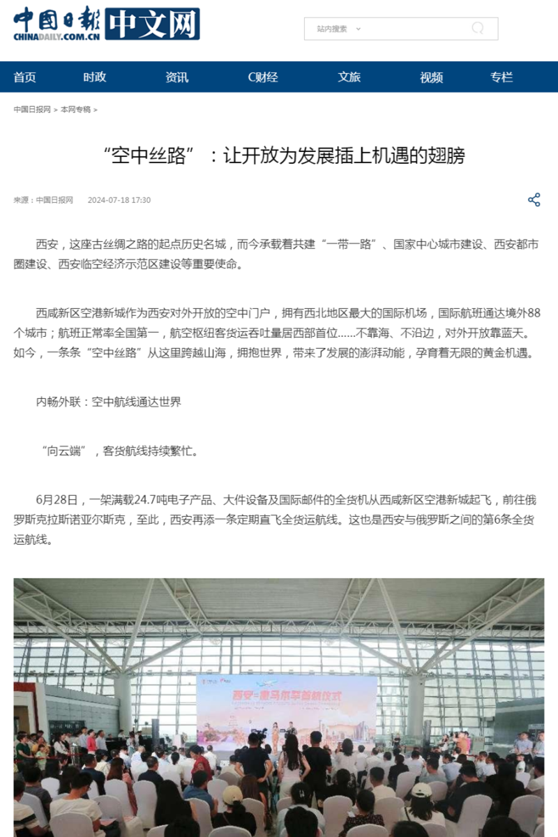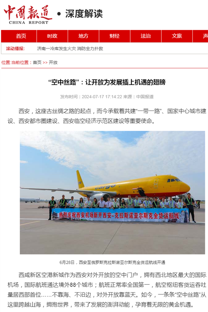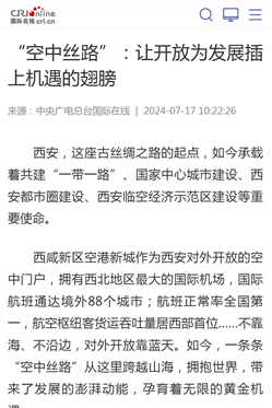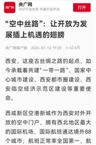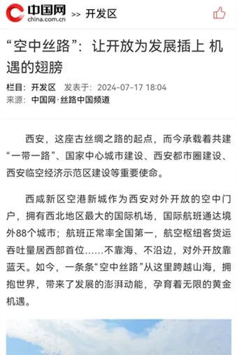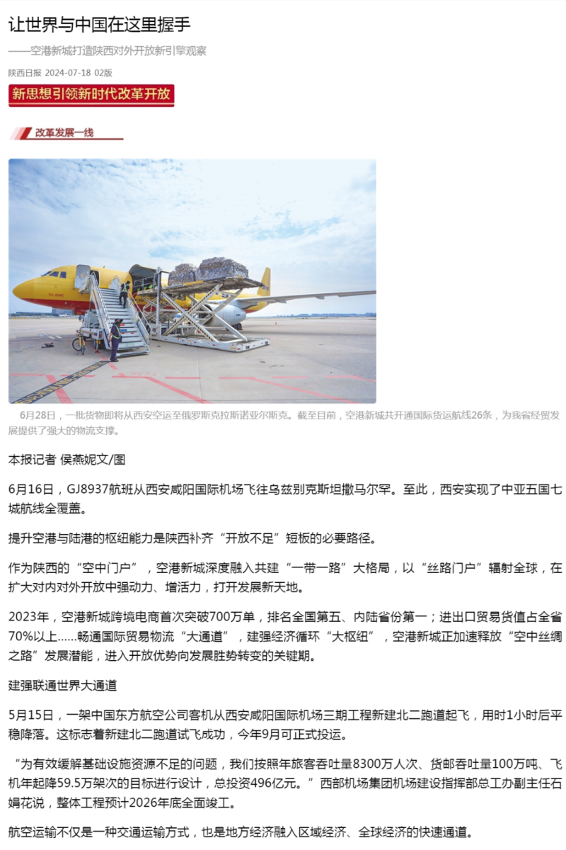 西部網、陜西網、陽光網、上游新聞等十余家主流媒體紛紛刊發報道,聚焦空港新城打造“空中絲綢之路新起點”,以高水平開放引領高質量發展的有力舉措和顯著成效。