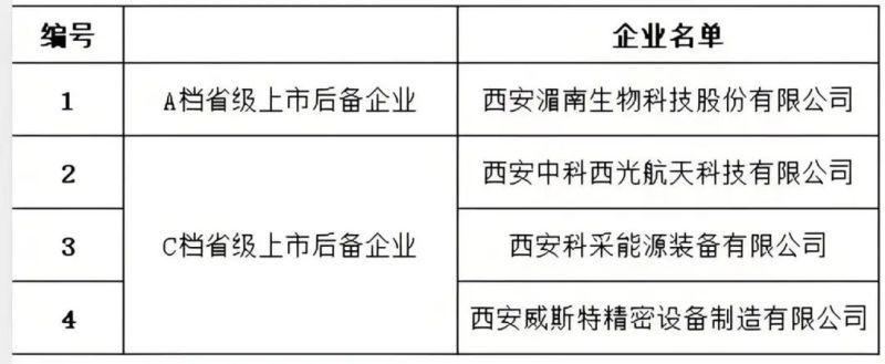近日,中共陜西省委金融委員會辦公室公布了2025年度省級上市后備企業名單,空港新城的西安湄南生物科技股份有限公司、西安中科西光航天科技有限公司、西安科采能源裝備有限公司、西安威斯特精密設備制造有限公司4家企業成功入選。