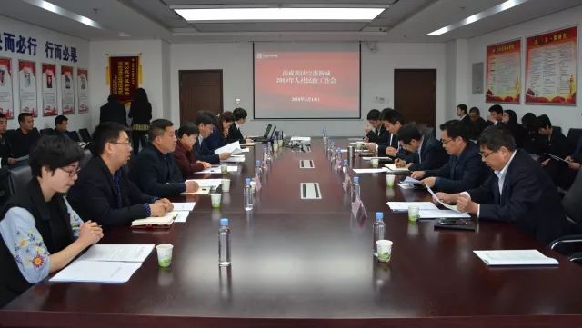 3月13日,空港新城召開2018年人社民政工作會,總結去年工作、部署今年計劃,與各責任單位簽訂目標責任書。空港新城黨委委員、管委會副主任蒙彬斌參加。