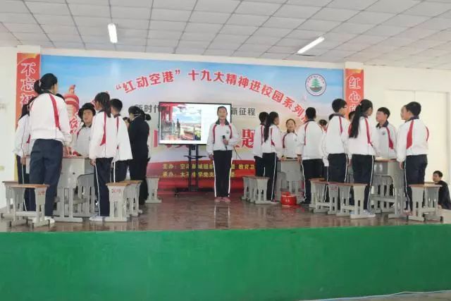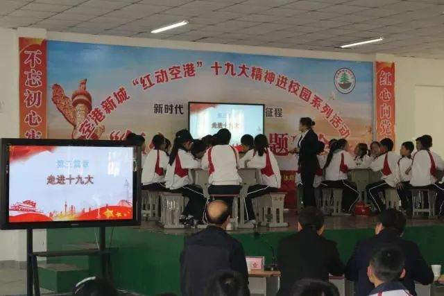 11月7日,空港新城“紅動空港”十九大精神進校園系列活動走進太平中學,舉行以“空港學子紅心向黨”為主題的班會教育活動,把宣傳和貫徹十九大精神延伸到基層學校每一位師生心中。黨委、管委會辦公室,黨委組織部,教育衛(wèi)體局,太平鎮(zhèn)政府相關(guān)負責人及太平中學全校700余名師生共同參加活動。