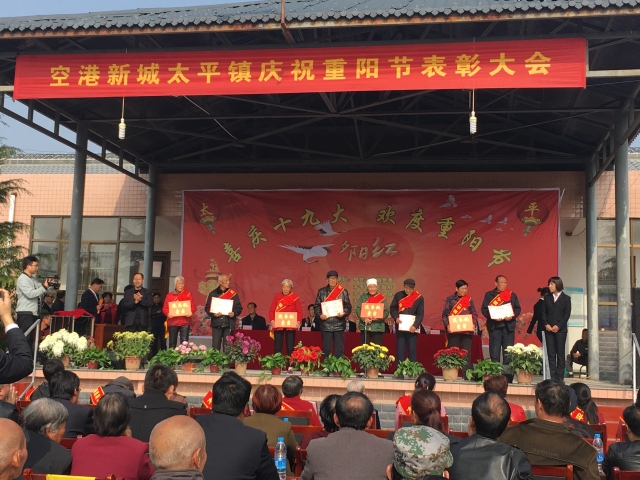 同日,太平鎮還舉辦了“喜迎十九大 歡度重陽節”表彰大會暨文化惠民演出活動。本次大會共表彰了“最美鄉村好人”、 “金婚之星”、“好公婆”、“好媳婦”、“好孝子”五大類共計30名先進個人,參會群眾共計500余人。