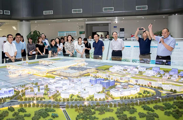 與會大咖先后到政務服務大廳、東航-賽峰起落架深度維修項目和航投大廈參觀考察,了解空港新城整體發展、重點項目建設、T5站前綜合商務區規劃、臨空產業園運營、JMRH產業園招商、自貿區建設以及綜合保稅區申報等情況。