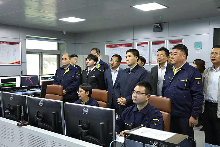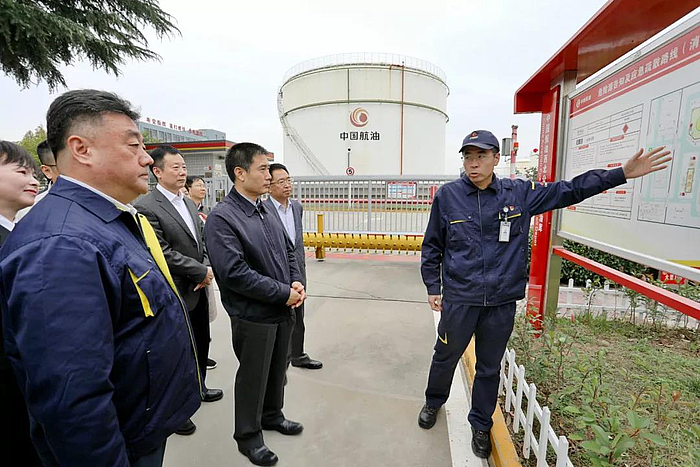 在中國航油機場油庫,徐大彤了解了油庫規模、運輸存儲、安全管控和供應保障情況,詢問了保稅航油工作進展,希望油庫確保質量、供應量,為建設西安國際航空樞紐、發展樞紐經濟貢獻力量。