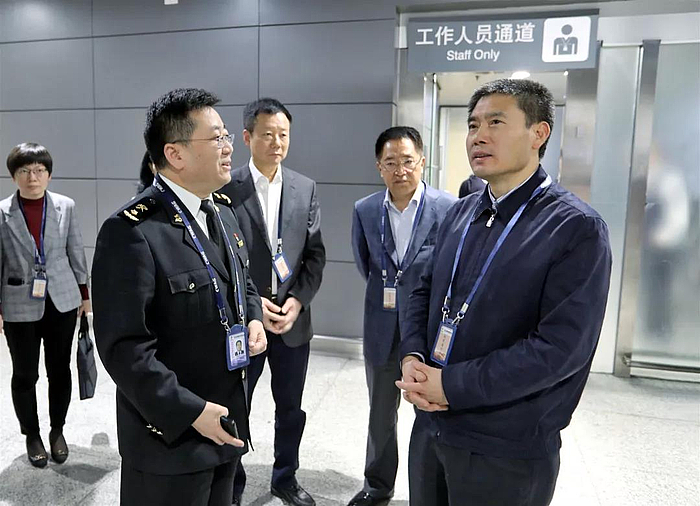 在西安咸陽國際機場,徐大彤聽取了機場海關智慧旅檢系統介紹,實地查看了衛生檢疫室,詳細了解了邊檢口岸工作情況。他要求,口岸單位要繼續發揚“特別能吃苦、特別能戰斗、特別能奉獻”的精神和“腦筋好、身體好、脾氣好”的工作作風,在確保國門安全的前提下,提升服務水平,助力區域經濟發展。