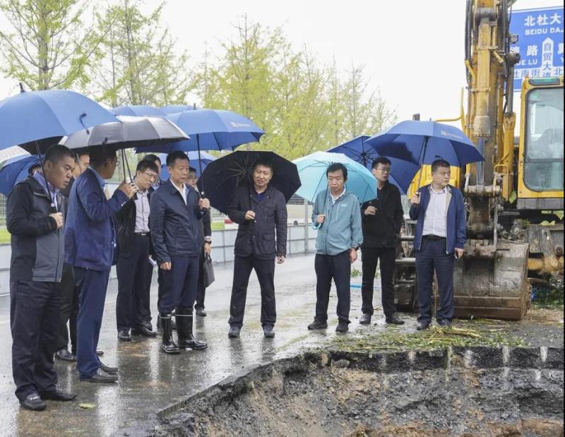 “這里的自來水管供應(yīng)的是哪個片區(qū)?”“目前該片區(qū)的群眾和企業(yè)如何用水?”在自貿(mào)大道自來水管搶修現(xiàn)場,工作人員正抓緊施工。賀鍵認真詢問目前周邊群眾的用水情況,并詳細了解自來水管破裂原因,查看搶修進度。他要求相關(guān)部門要在水管搶修期間做好周邊群眾用水保障,同時進一步完善搶修方案,抓緊治理,早日恢復(fù)區(qū)域供水。