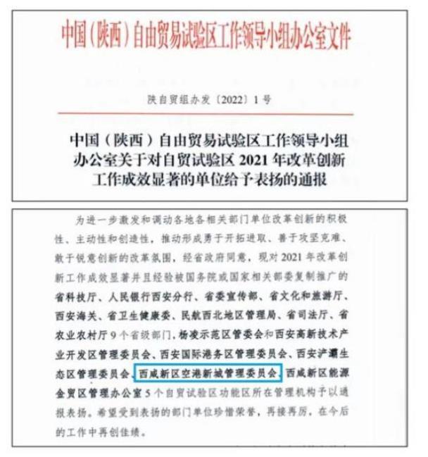 四是緊抓創新,形成多項自貿改革成果。中國(陜西)自由貿易試驗區工作領導小組辦公室印發《關于對自貿試驗區2021年改革創新工作成效顯著的單位給予表揚的通報》,空港新城功能區榜上有名,對空港新城自貿區建設工作的肯定,新城功能區已連續兩年獲得陜西省自貿區工作領導小組的發文表揚。截止目前,空港新城功能區累計形成創新成果49項,案例數量位列新區首位,其中“大型機場運行協調新機制”、“航權開放助力國際航空樞紐建設”、“進口快件智慧監管模式”等4項全國復制推廣,“行郵稅移動支付”等9項全省復制推廣。