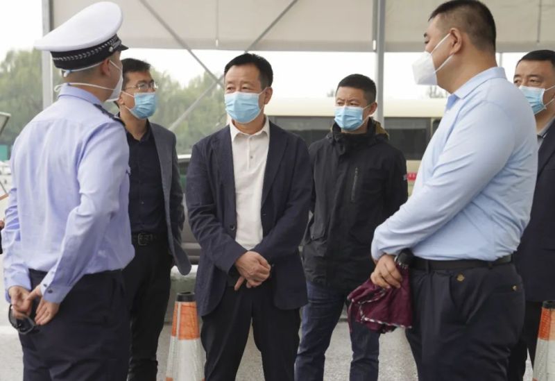 賀鍵來到機場西高速路口,查看了對過往車輛的防疫檢查情況,詢問了來自不同地區車輛的檢查分類、通道設置以及國慶假期首日交通流量,了解了防疫檢查站的警力、工作人員配備情況。
