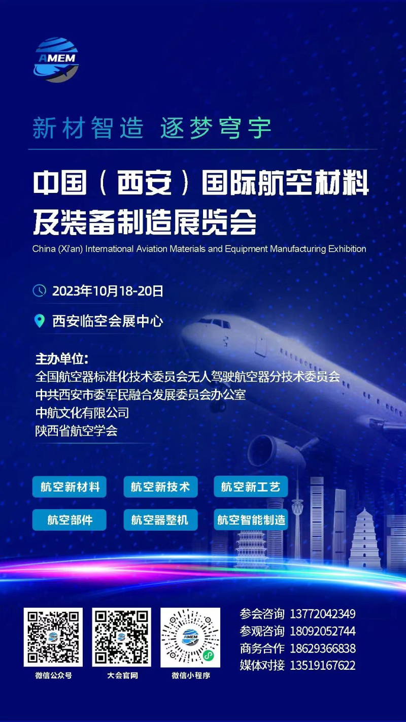 10月18至20日,2023中國(西安)國際航空材料及裝備制造展覽會將在西安臨空會展中心盛大開幕。