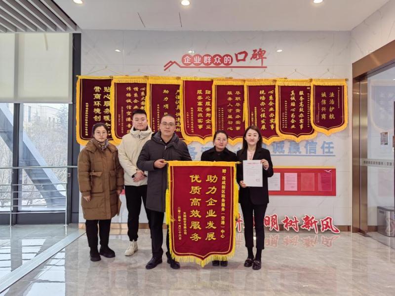 近日,天駒航空有限公司負責(zé)人張先生將“助力企業(yè)發(fā)展,優(yōu)質(zhì)高效服務(wù)”的錦旗及感謝信送到空港新城政務(wù)服務(wù)大廳,對工作人員專業(yè)敬業(yè)的服務(wù)給予了高度贊揚。