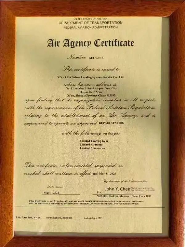2024年5月,西安東航賽峰起落架系統(tǒng)維修有限公司獲得美國(guó)聯(lián)邦航空管理局(FAA)頒發(fā)的維修單位許可證。自此,該企業(yè)已獲得中國(guó)民航局(CAAC)、歐洲航空安全局(EASA)、美國(guó)聯(lián)邦航空局(FAA)的維修資質(zhì)。具備完備的三大局方體系下的維修資質(zhì),可承接國(guó)內(nèi)外更大范圍飛機(jī)起落架維修業(yè)務(wù),將不斷增強(qiáng)公司在市場(chǎng)上的競(jìng)爭(zhēng)力。